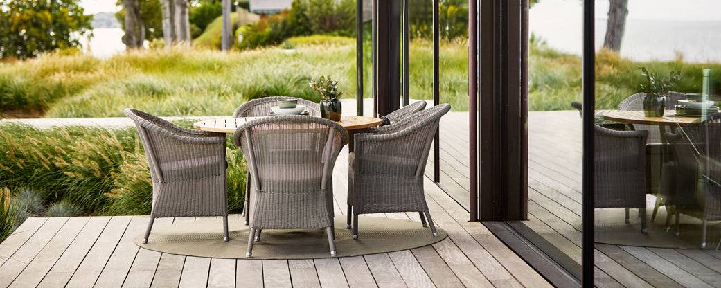 La colección Lansing presenta un estilo clásico y campestre. El conjunto incluye una amplia silla de comedor y un sofá de dos plazas, que ofrecen un alto nivel de confort tanto durante las comidas como para relajarse durante largas sobremesas. Lansing está disponible en un trenzado natural tipo loom, que añade un toque cálido y artesanal a cualquier espacio exterior.