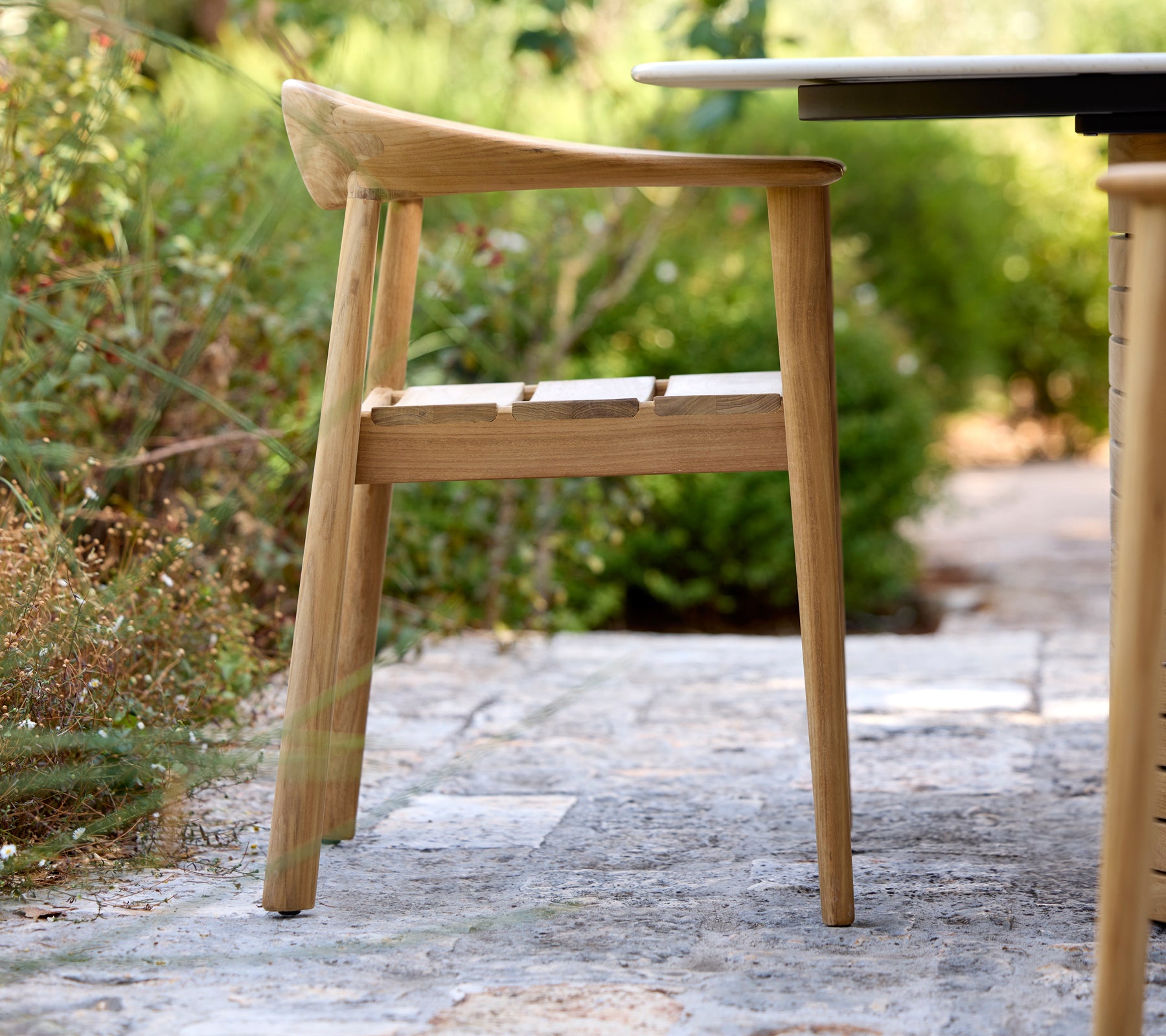 La teca desarrolla con el tiempo una hermosa pátina gris plateada si se deja sin tratar. Para conservar su color dorado original durante las estaciones, se recomienda el uso de los productos de mantenimiento para teca de Cane-line.